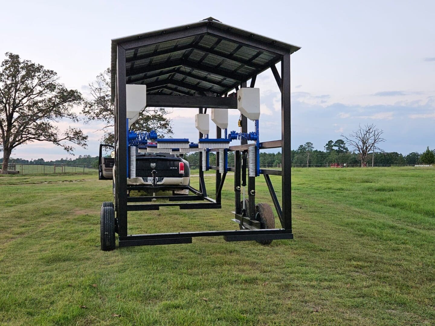 Tired of battling flies and mosquitoes around your herd? The Cow Wash is your new hands-free solution for livestock grooming and insect control. Designed with ranchers, dairy farmers, and feedlot operators in mind, this portable system takes the hassle out of medicated applications—saving time, product, and stress.
